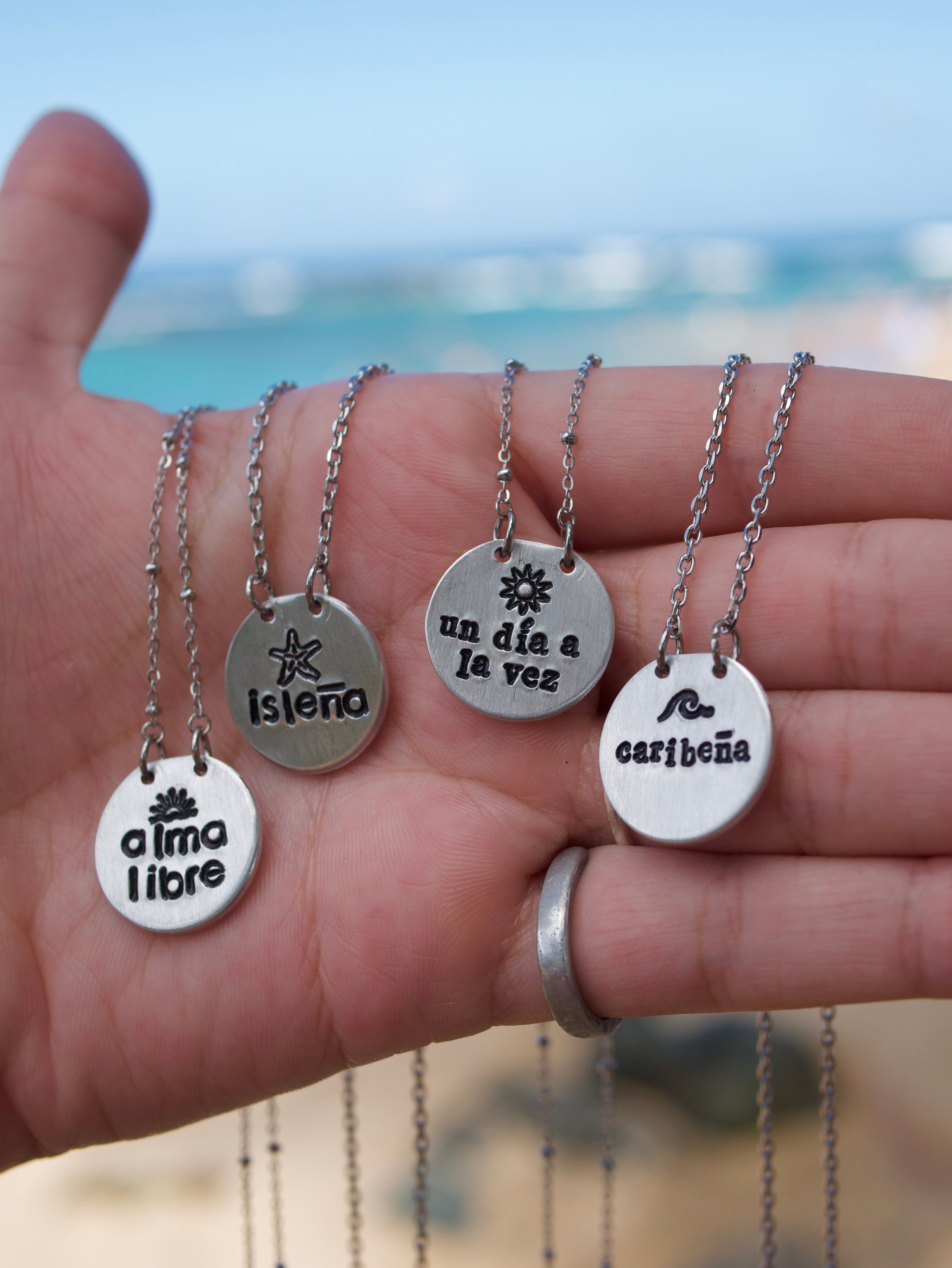 Placa trabajada en aluminio con cadena es stainless steel.